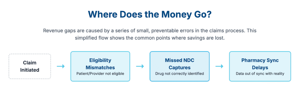 Small, unnoticed errors such as eligibility mismatches, missed NDC captures, or contract pharmacy data delays can add up to major losses.