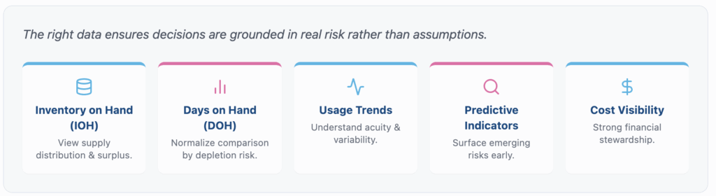 System-level redistribution requires a complete and accurate picture of supply and demand across every facility. The right data ensures decisions are grounded in real risk rather than assumptions or incomplete reporting.